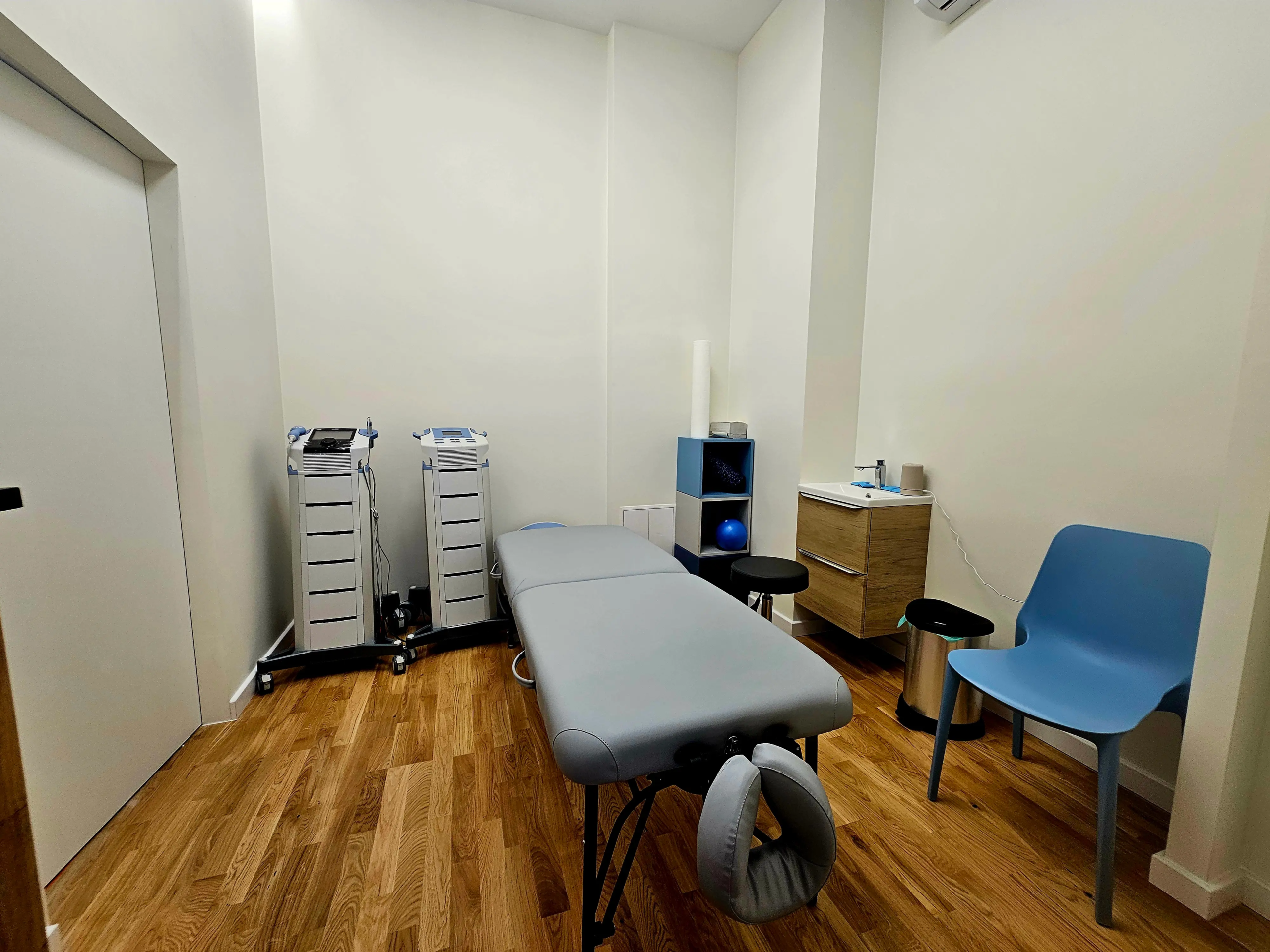 Zabiegi wspomagające leczenie i regenerację, w tym: fala uderzeniowa, laseroterapia, ultradźwięki, elektroterapia, pole magnetyczne oraz krioterapia.